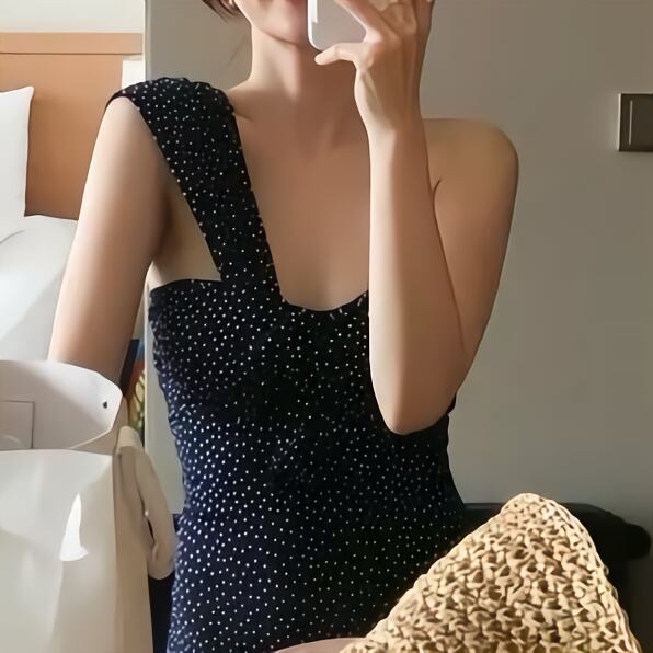Polka Dot One-Shoulder Swimsuit【S00239】