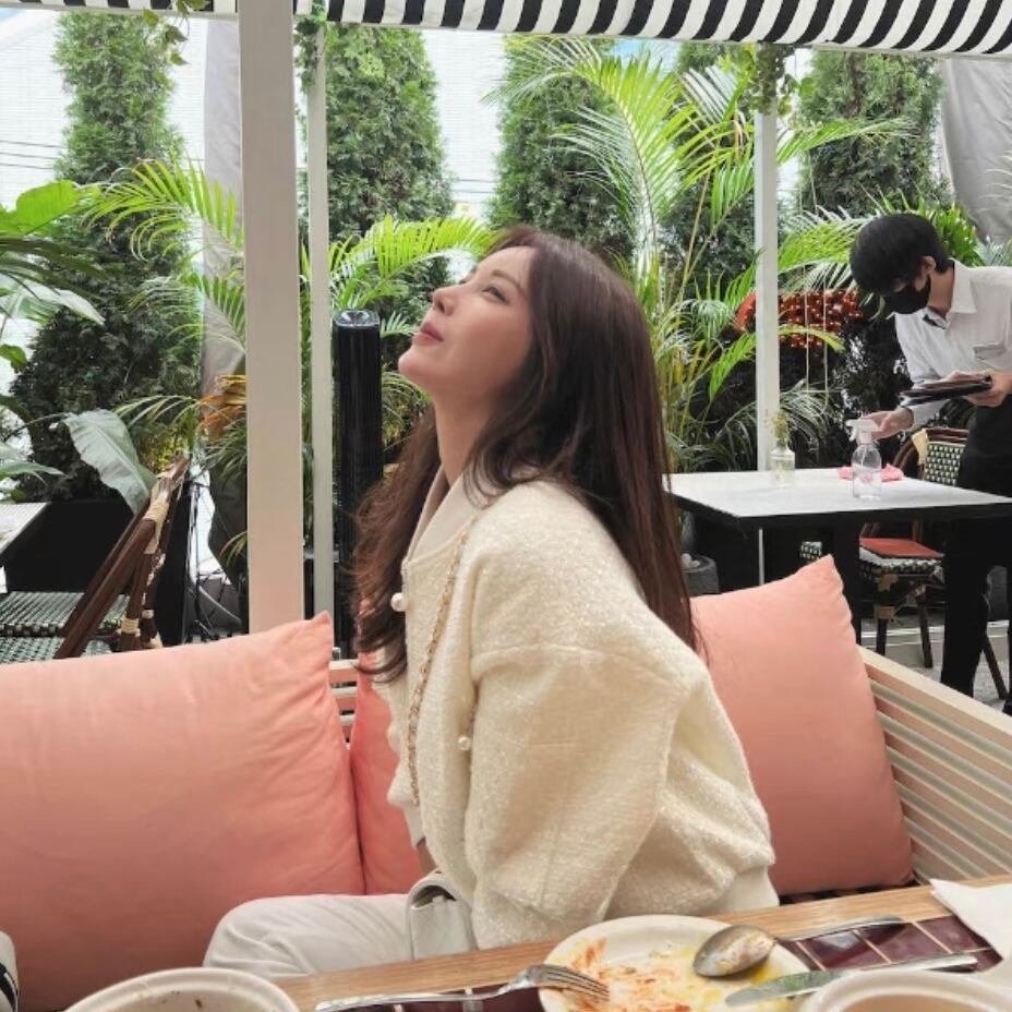 パール調のファスナーがアクセントになった、トゥイード柄のブルゾン