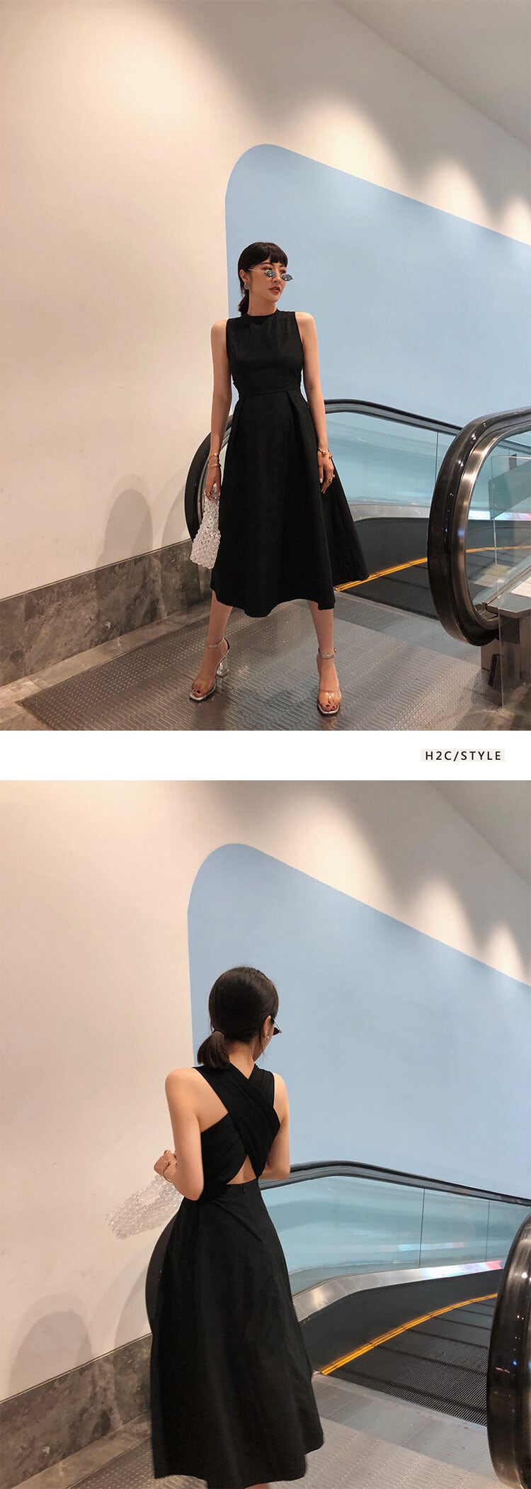 バッククロスが美しいブラックドレスは、シンプルな中にも個性が光る一着です。背中のデザインが華やかさをプラスしてくれるため、パーティーシーンやデートなど特別な日にもぴったりです。