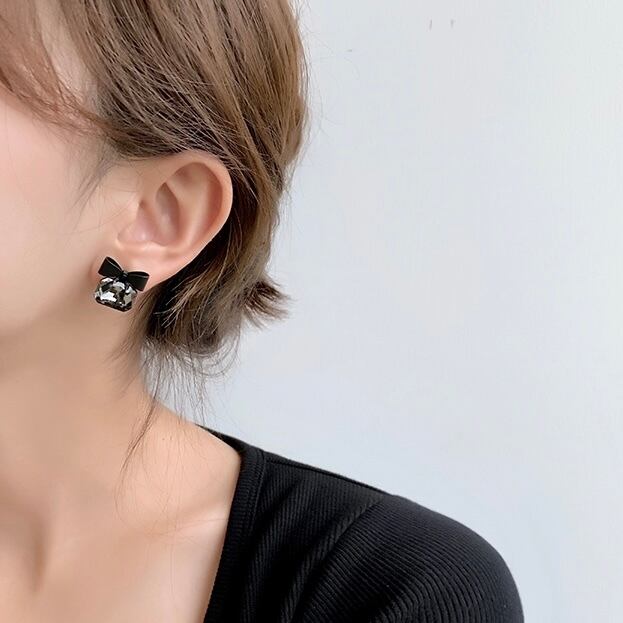 クリスタルブラックリボンピアスは、上品で華やかなデザインが魅力のアクセサリーです