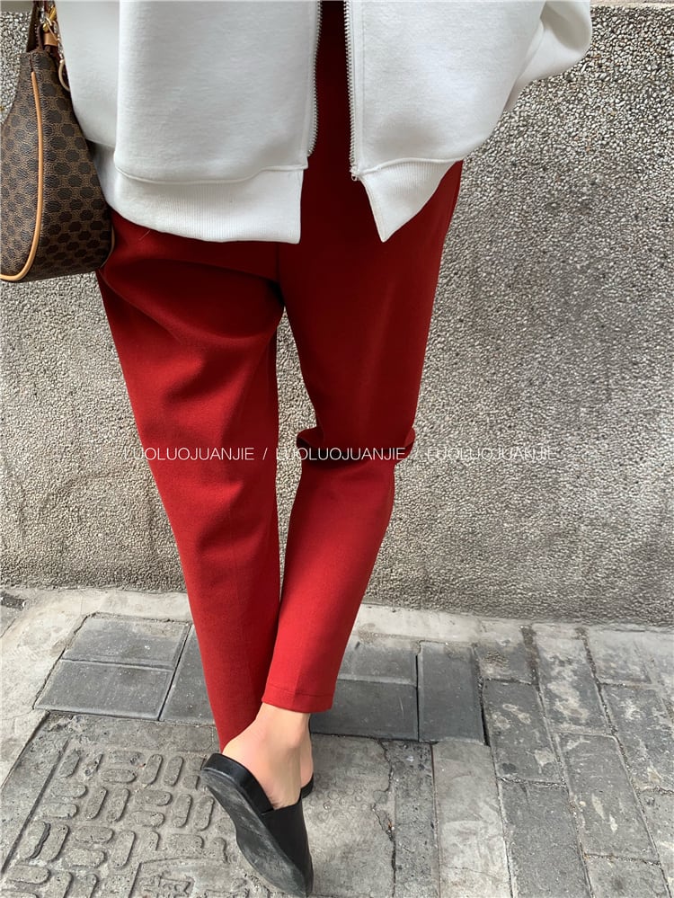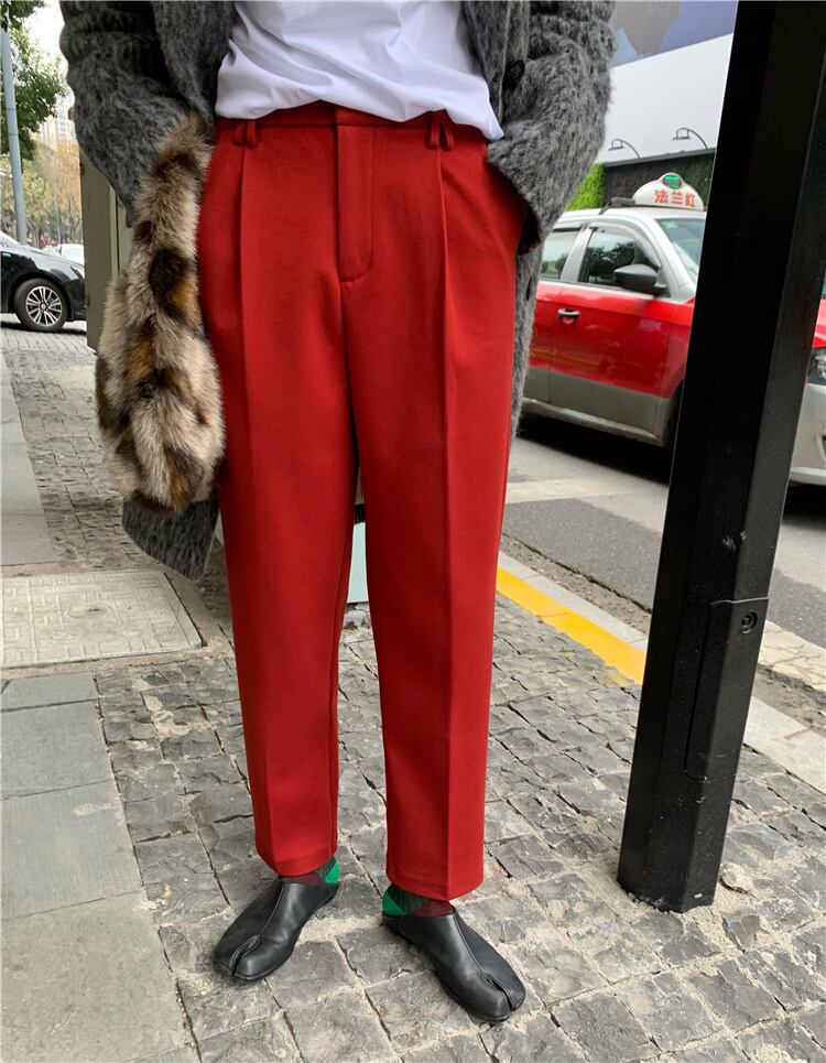 Red slim casual pants