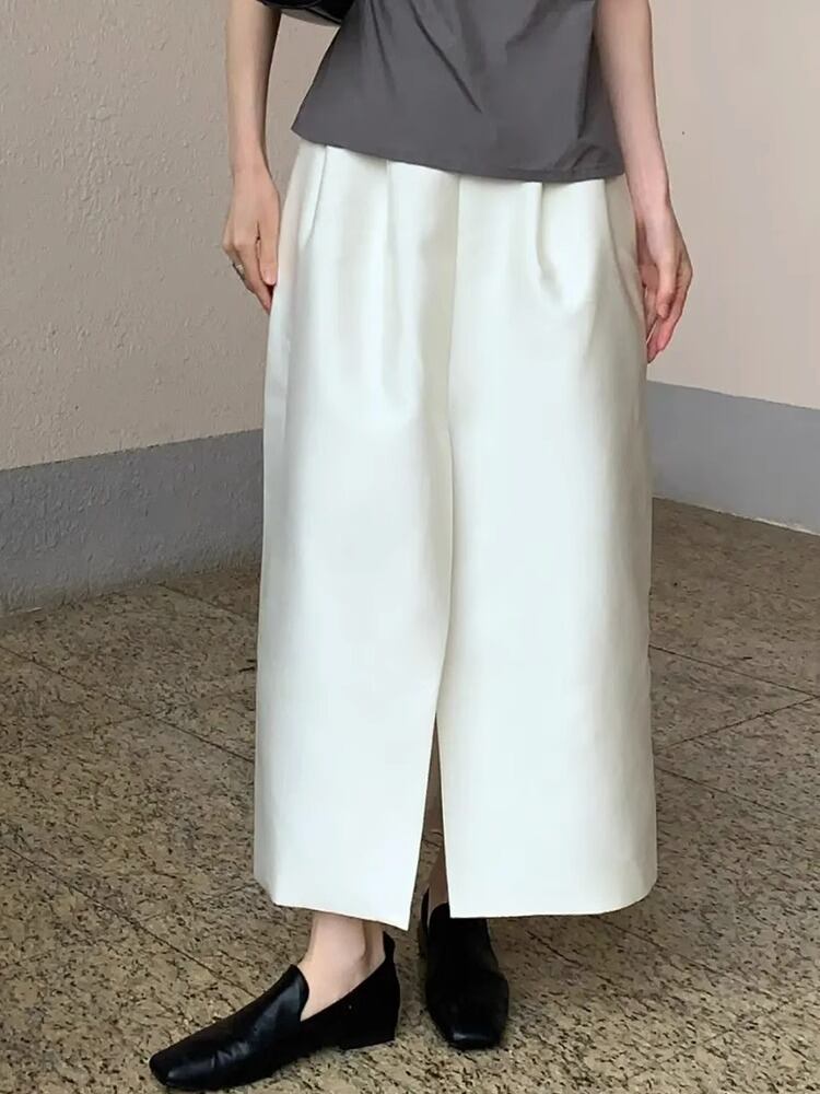 絶妙なミモレ丈とサイドのスリットが美脚効果を演出し、歩くたびに品のある風を感じさせます。