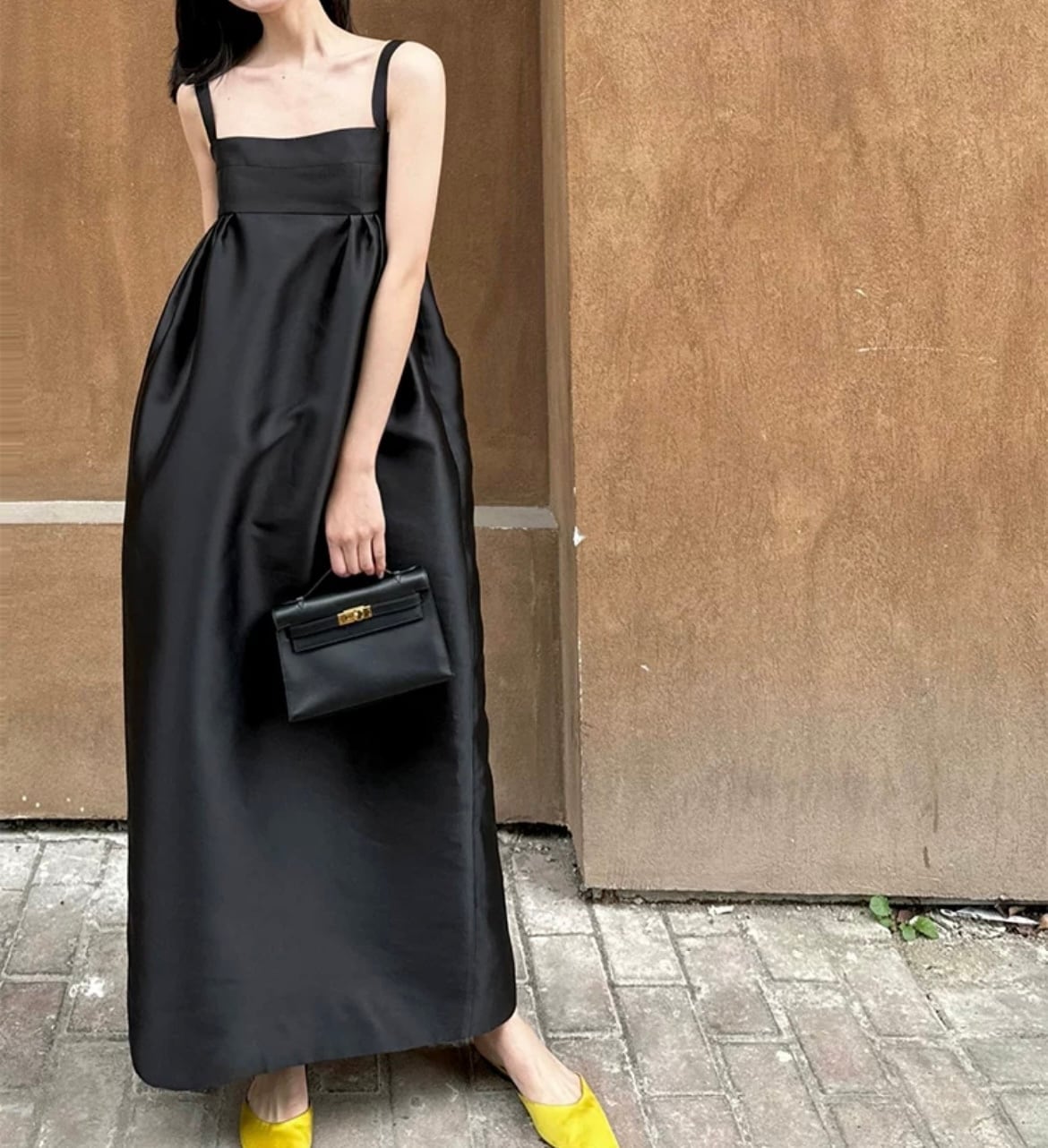 French suspender black dressは、フレンチスタイルを取り入れたエレガントなワンピースです。ブラックカラーで落ち着いた印象ながら、サスペンダーがアクセントになっています。シンプルなデザインながらも、女性らしさを引き立てる一着です。