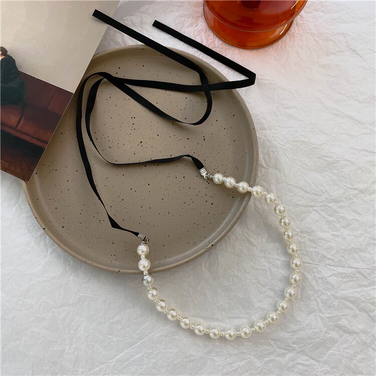 Pearl black ribbon chorker 【S00077】