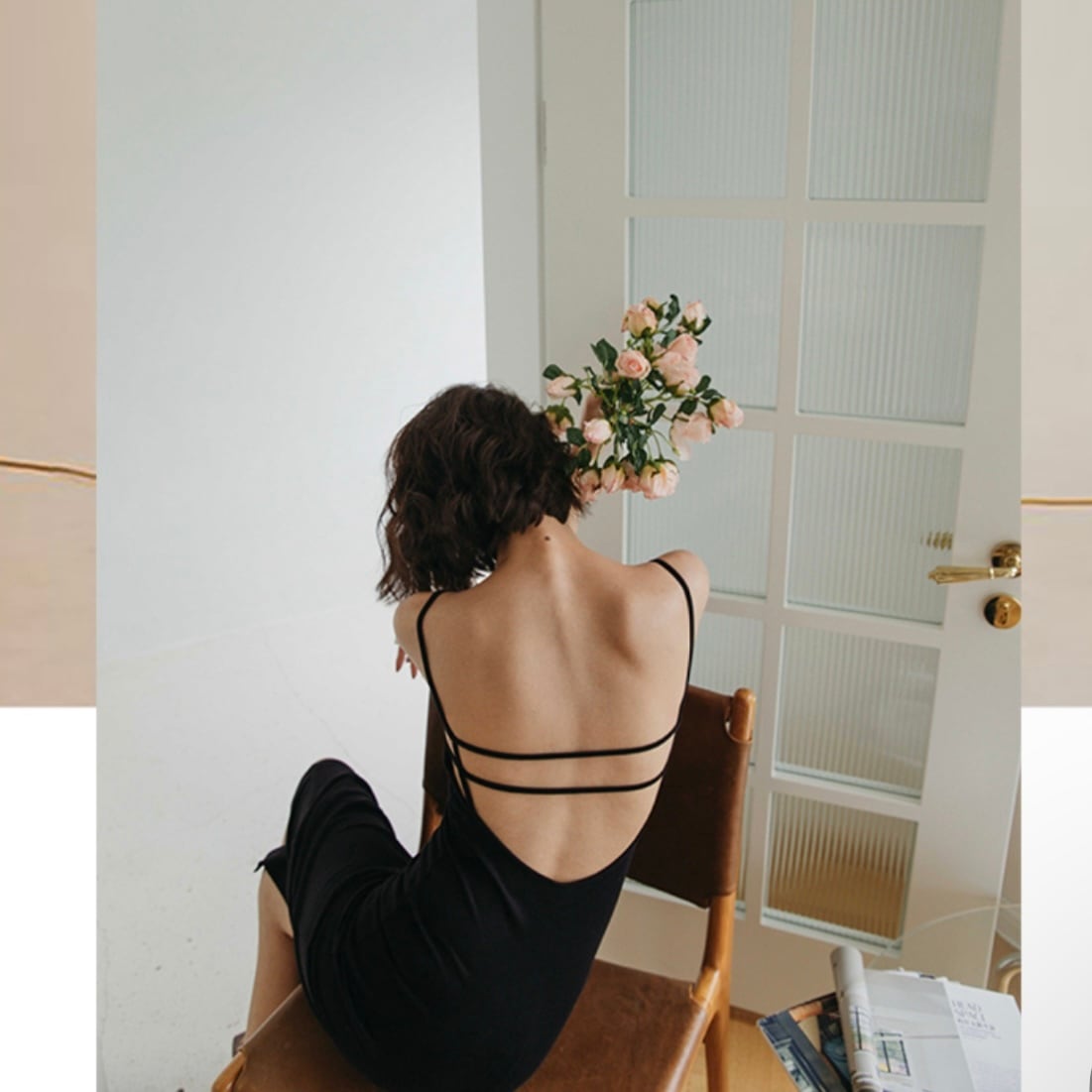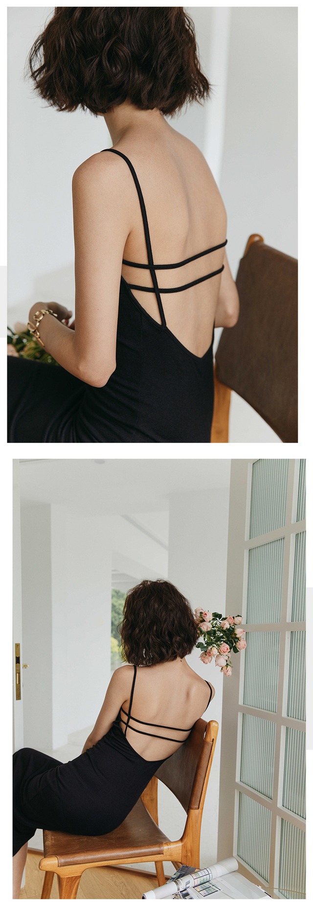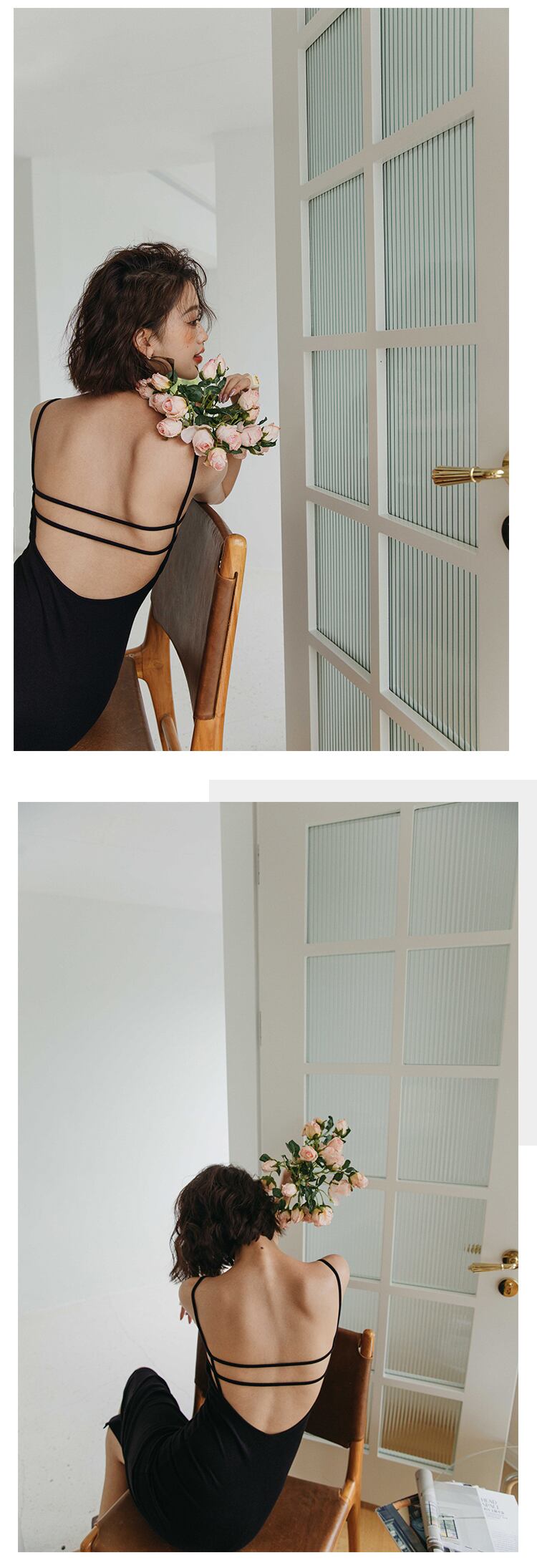 背中に施されたオープンデザインは、サブリミナルな魅力を放ち、着る人を特別感を与えます。