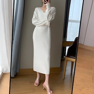 White knit v-neck slim inner skirt【H00369】